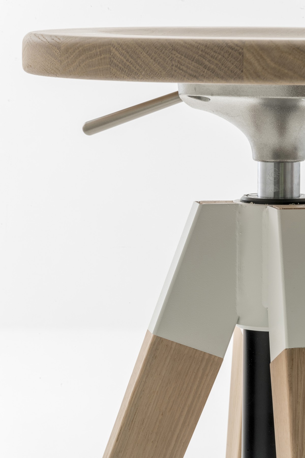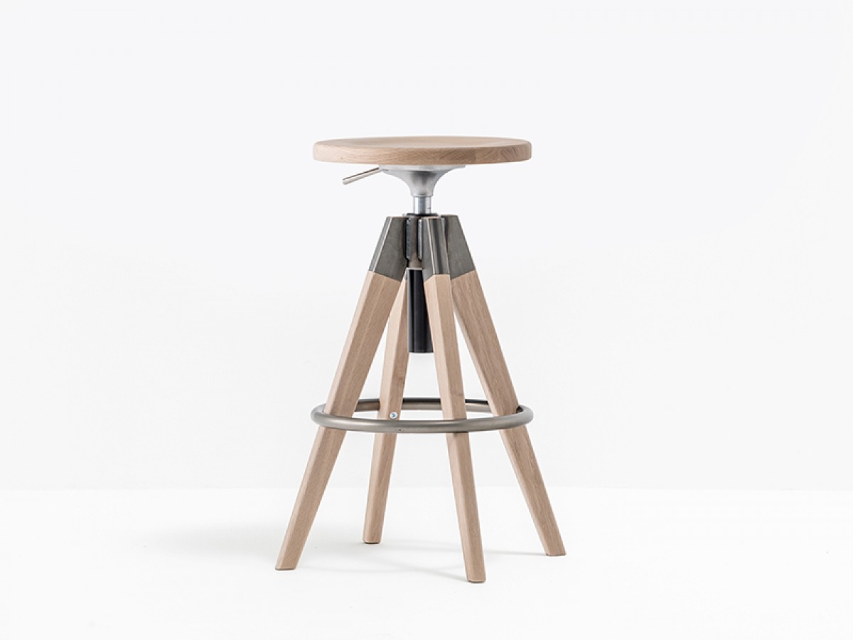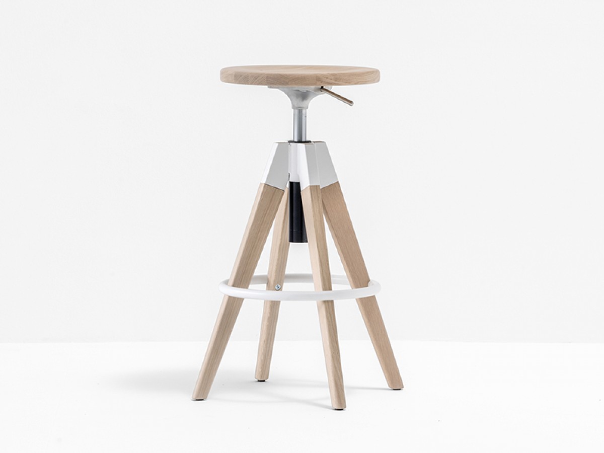 - A barstool with bleached or black stained solid oak seat and legs, swivel and with gas lift device to easily changes the height from 650 to 755mm.
