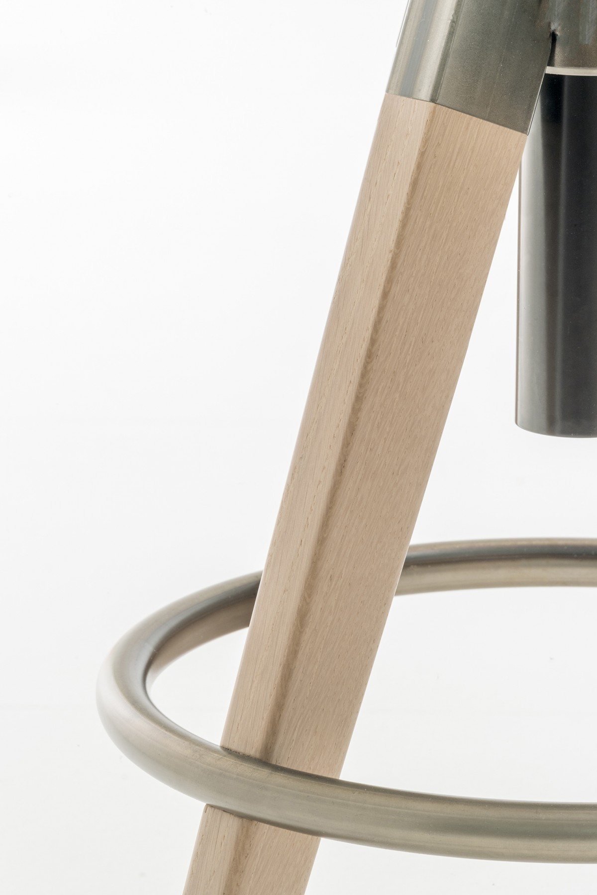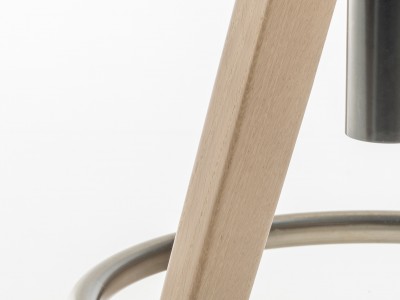 - A steel footrest on the legs creates a nice contrast to the naturalness of the wood.