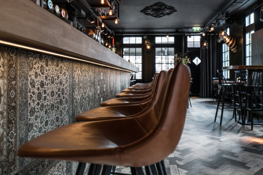 - The decorative stitching of the vintage shell combined with the straight lines of the base, makes this chair and barstool a very contemporary design.