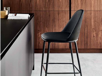 • Lea is a versatile stool with a sturdy four-leg steel base. The seat and backrest of this stool are expertly upholstered in a variety of options, including fabric, leather, or faux leather. What's more, you have the flexibility to choose different fabrics for the front face and back face, allowing for a customized and unique look.