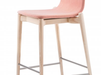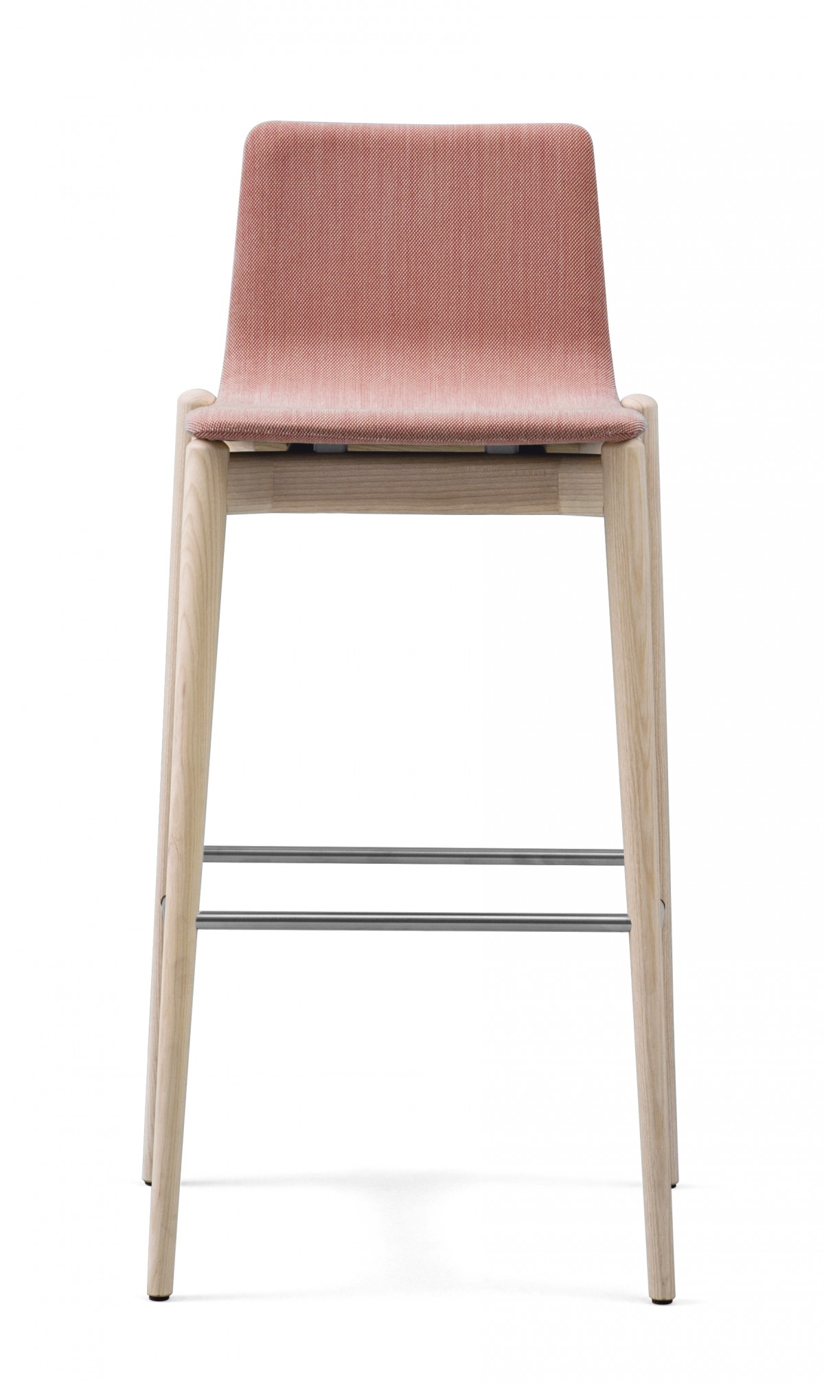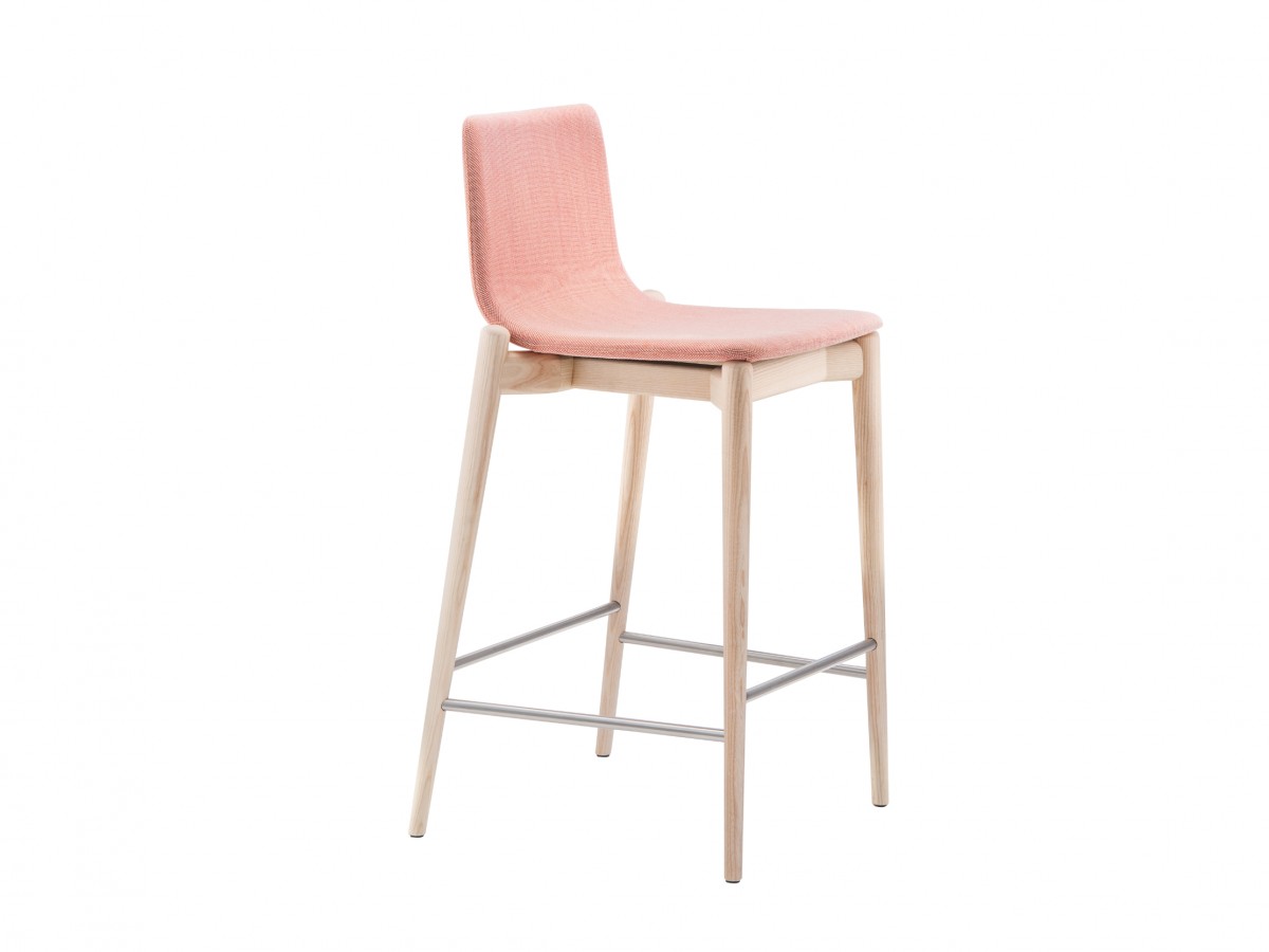 - Barstool with upholstered shell, solid ash wood frame and stainless steel footrest. Seat height 655 mm.