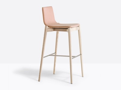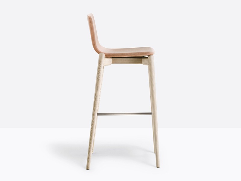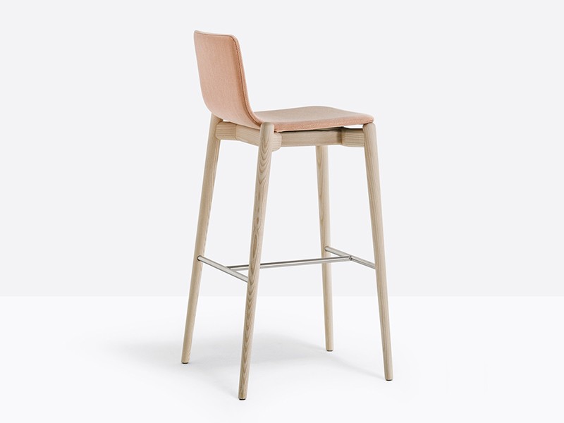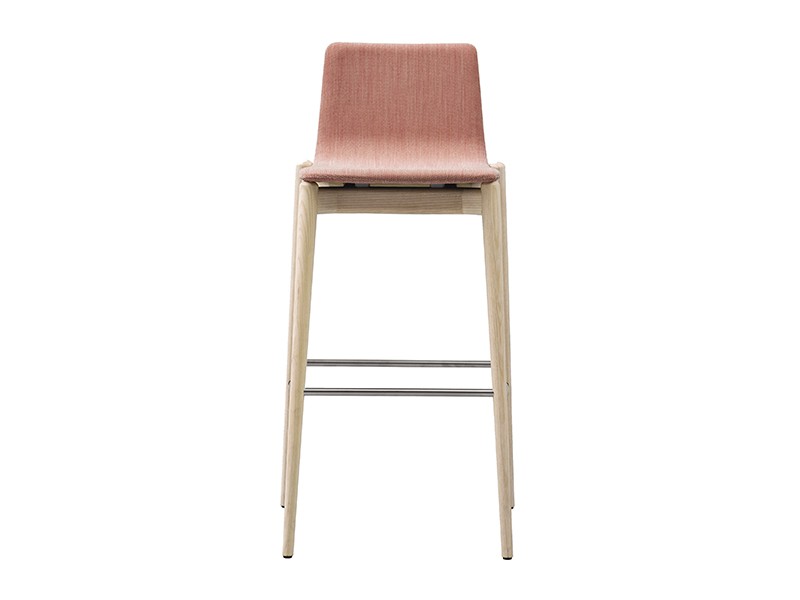 - Barstool with upholstered shell, solid ash wood frame and stainless steel footrest. Seat height 755 mm.