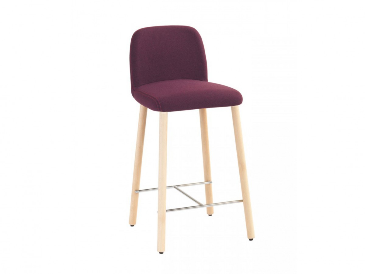 - Bar stool with wooden frame and shell upholstered in fabric.
