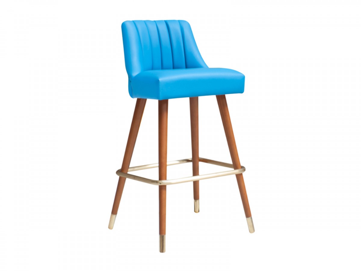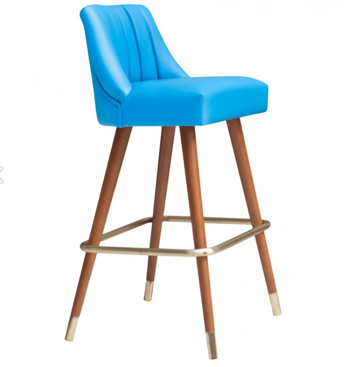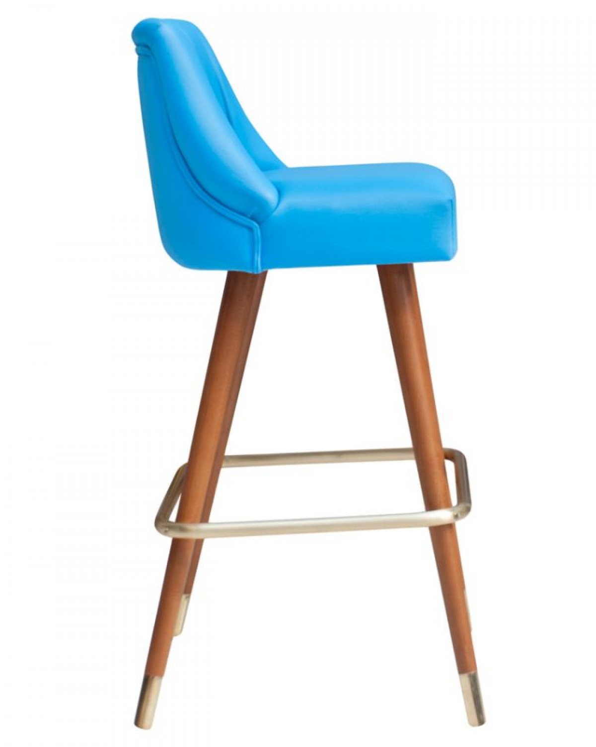 - The Sacramento bar stool has a modern design with a distinctive shell, which can be upholstered in a variety of materials.