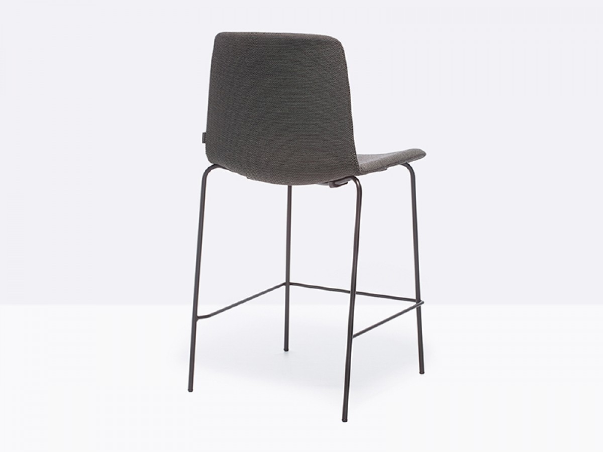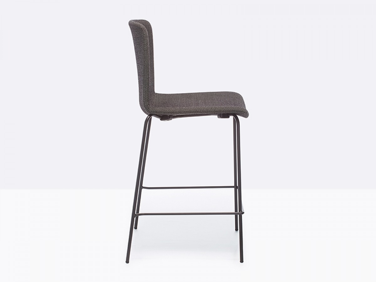 - Stool Tweet soft, stackable, with upholstered shell in fabric or imitation leather and structure in steel tube Ø14 mm. Height 660 mm.