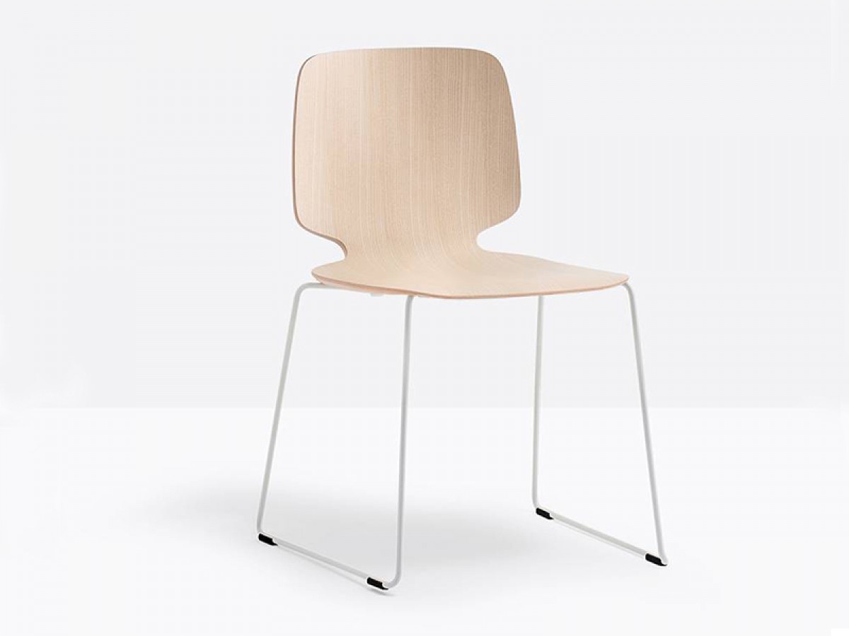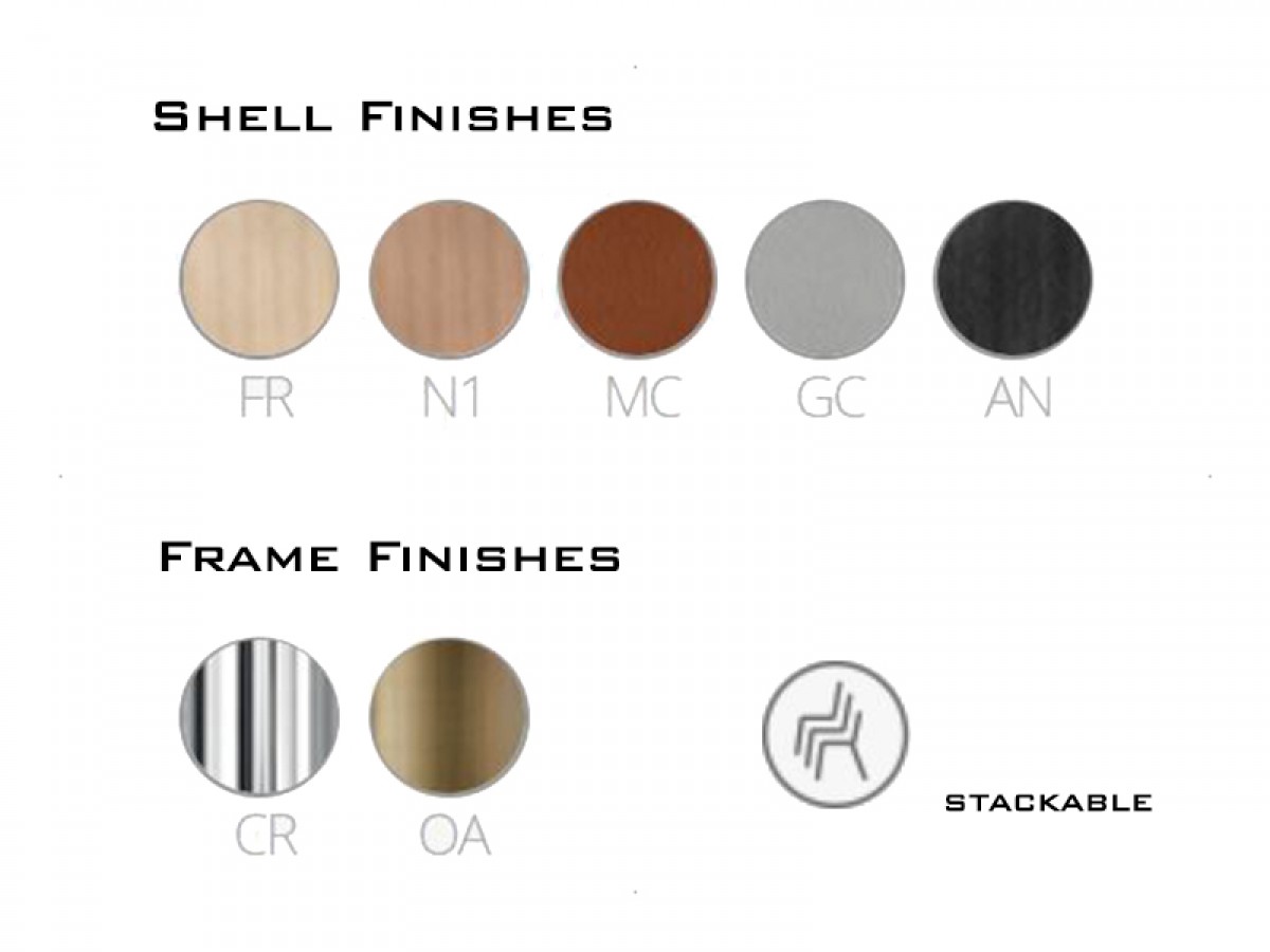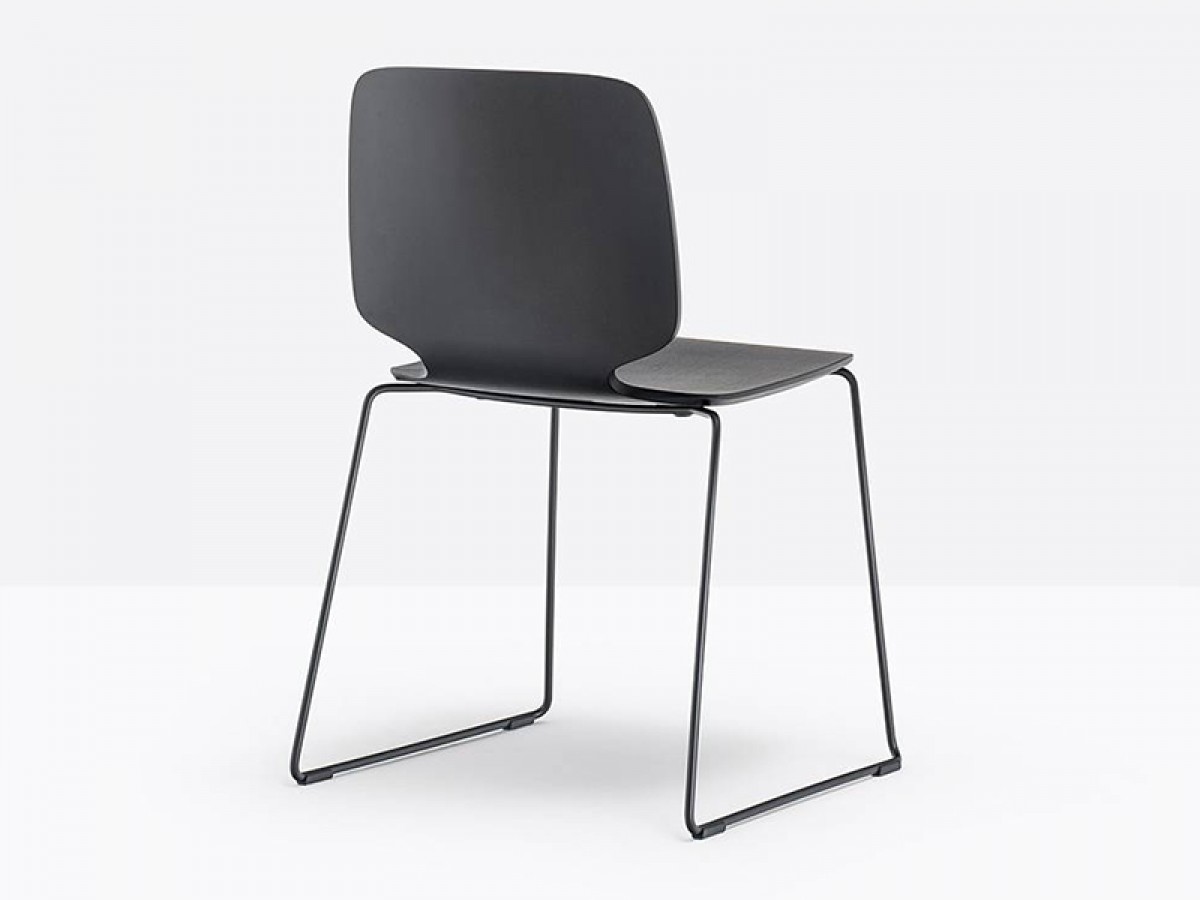 - Plywood shell and sled frame in steel rod chrome, black or white.