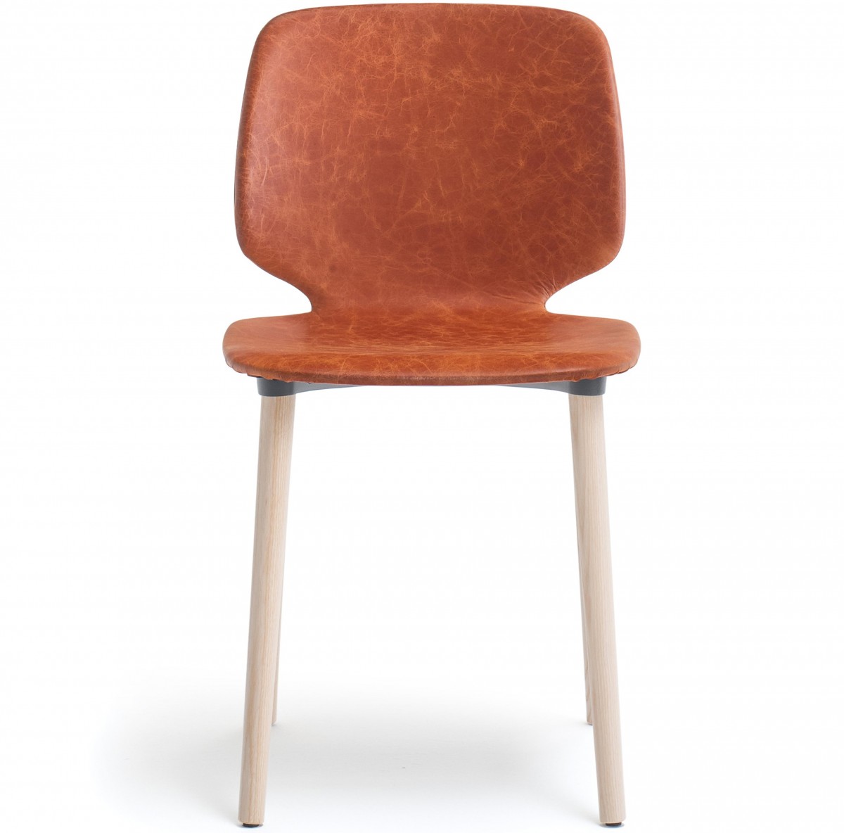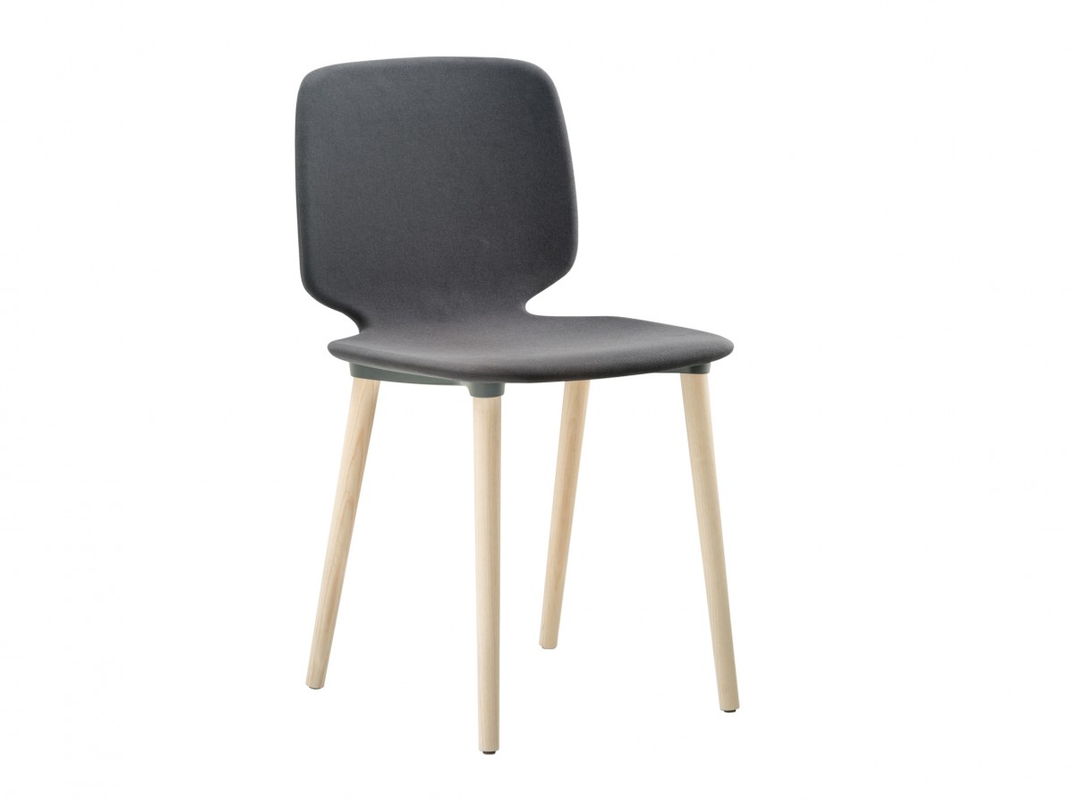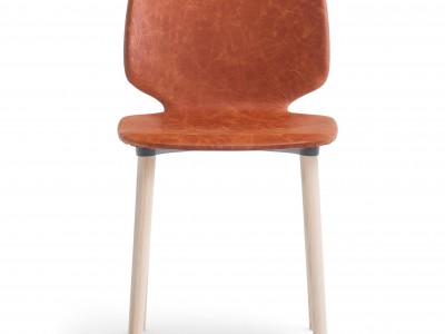 - Chair with upholstered shell in fabric or simil leather and die-cast aluminium frame.