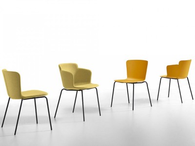 - Chair with four-legs base in lacquered steel.