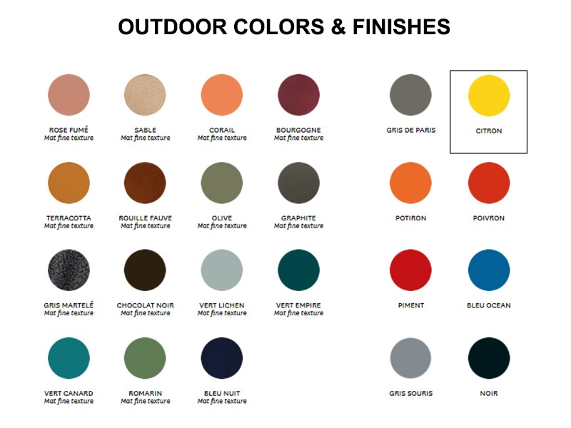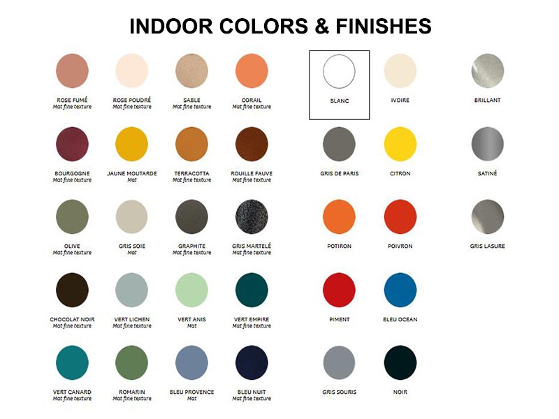 - Raw steel varnished or painted, for indoor or outdoor use.