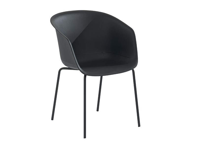 - With its armrests and an open-shell design supported by a sturdy steel frame and four legs, this chair provides a customizable experience with a range of color options.