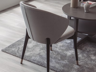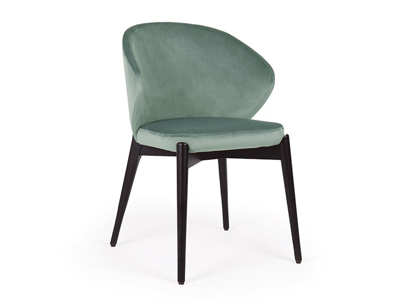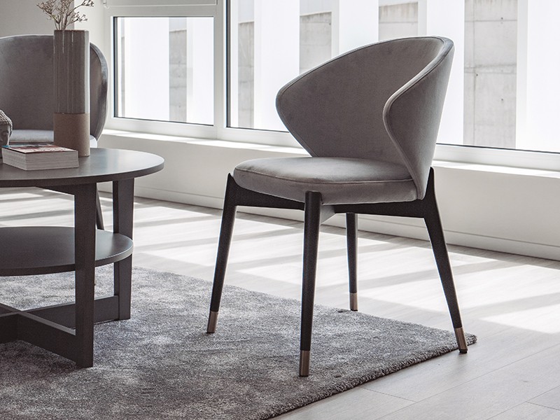- This wooden chair can be customized by choosing from a wide range of professional fabrics.