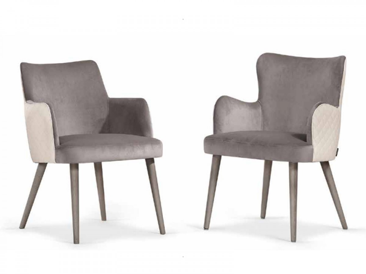 - Armchair, with solid beech wood frame, seat and back in fabric or faux leather.