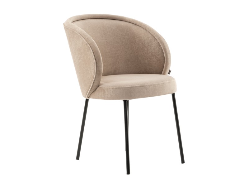 • Dining chair with armrests and metal legs.