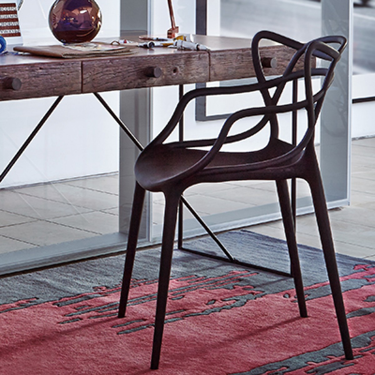 • The Masters chair is a powerful tribute to three symbolic chairs, re-read and re-interpreted by the creative genius of Starck.