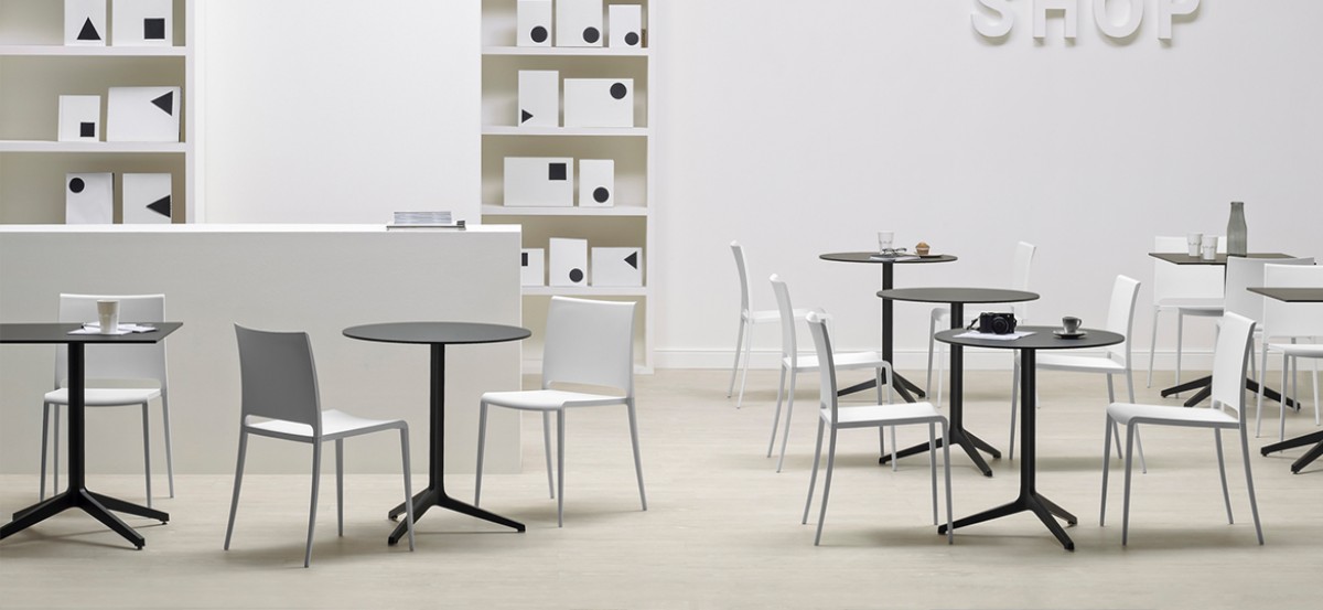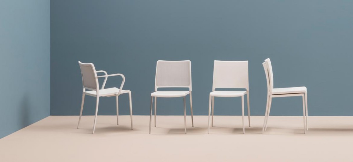 • Mya 701 chair with polypropylene seat and mesh textilene back.