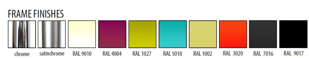 • Powdercoated in RAL colors, chromed or satinated frame.