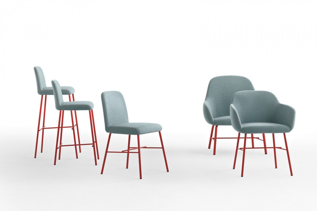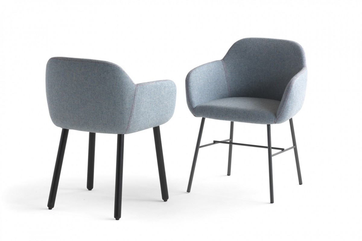 • 4-leg chair with steel frame and shell upholstered in fabric.