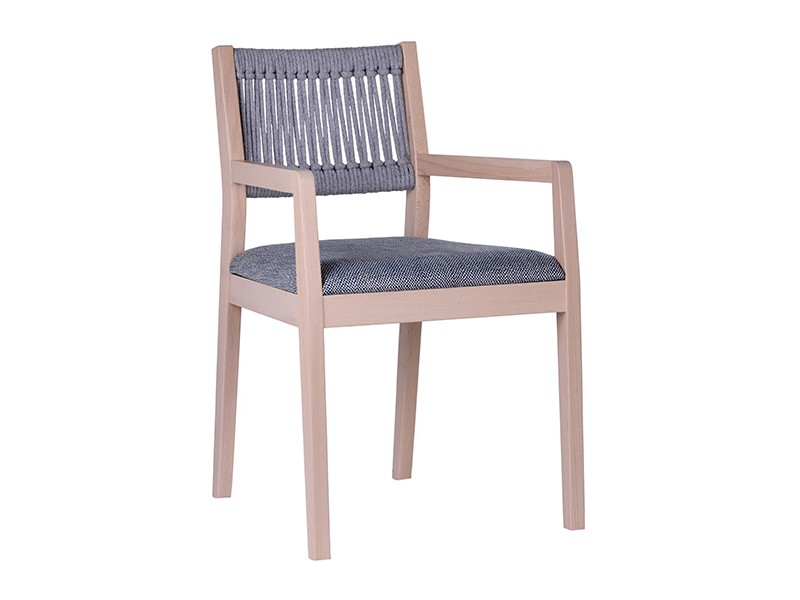 - Upholstered beech wood chair with armrests, with weaved back.
