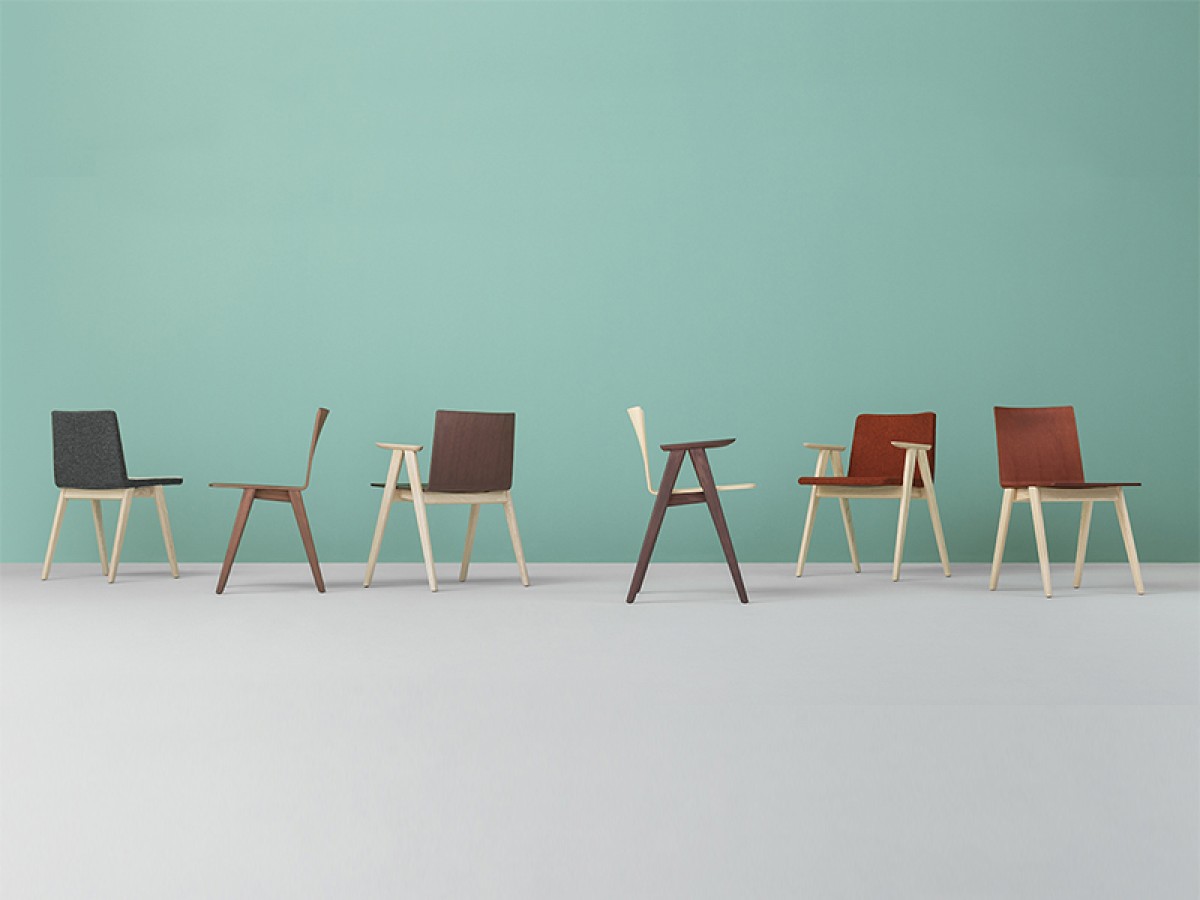• Upholstered chair in fabric, also two tone, with plywood seat and ash wood frame.