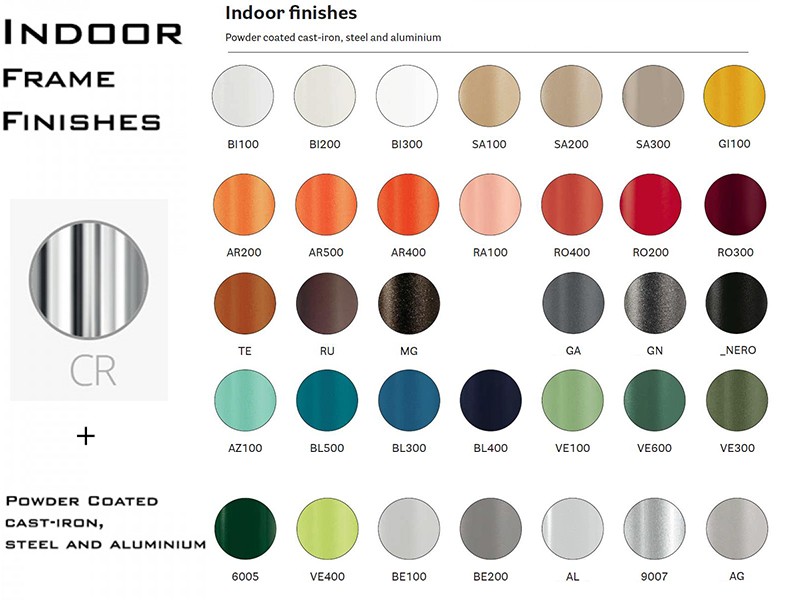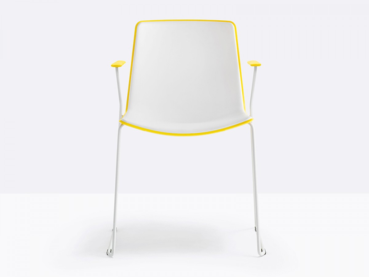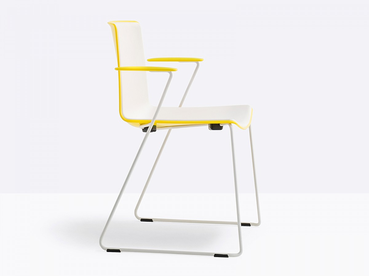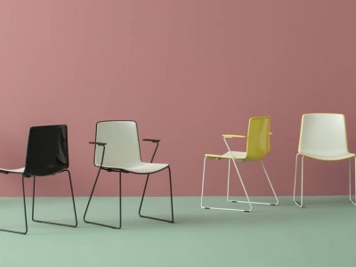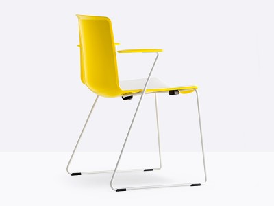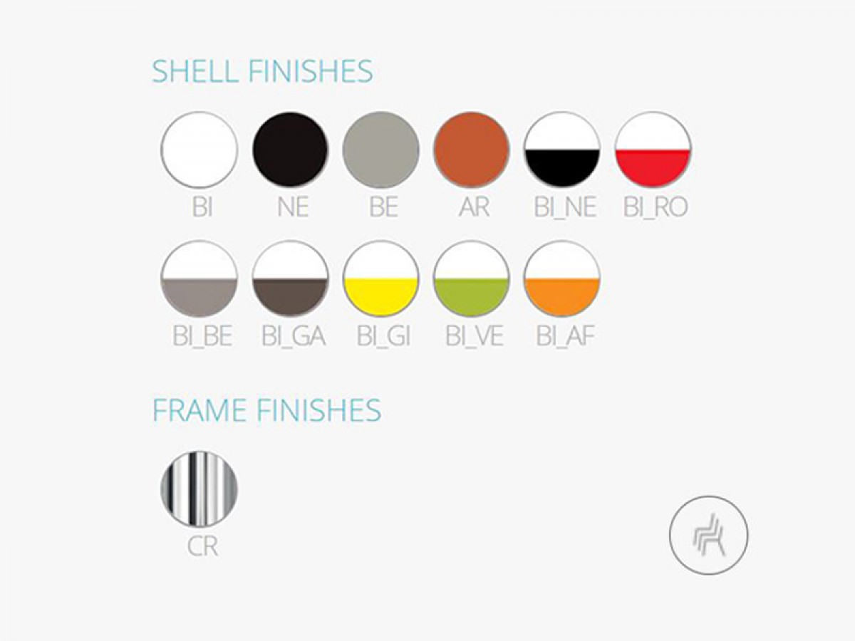 • Bi-injected moulding polypropylene shell with sled frame in steel rod Ø11 mm, chromed or powder coated.