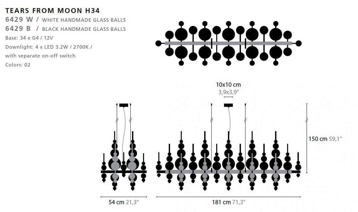 • Base: 34 x G4 / 12V / MAX. 10W (not included)