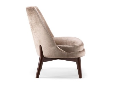 • The Celine S Lounge, crafted with the characteristic wooden leg detail gracefully enveloping the backrest, stands out as a distinctive piece.