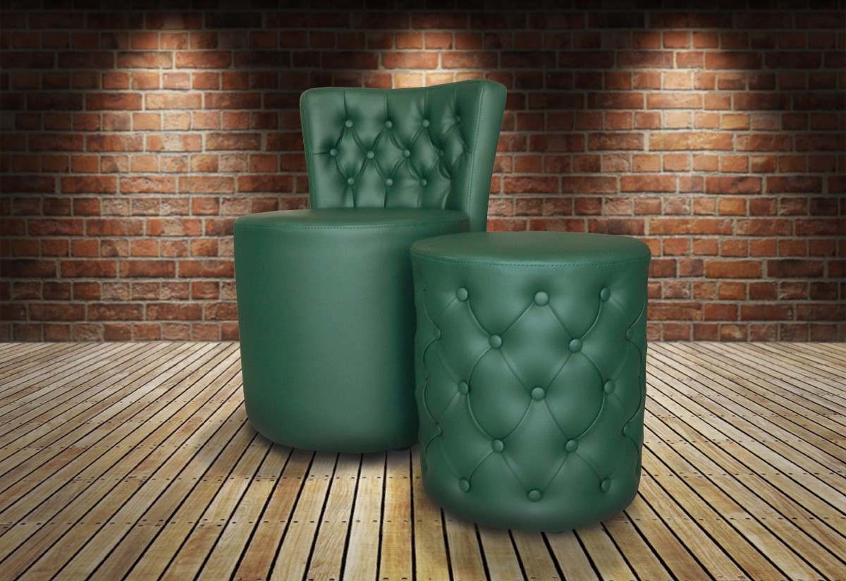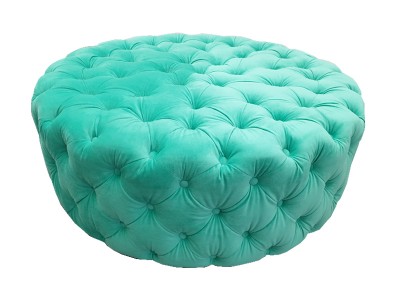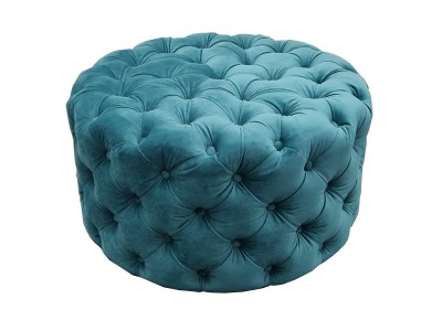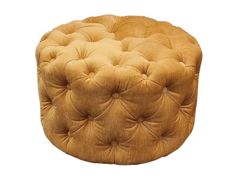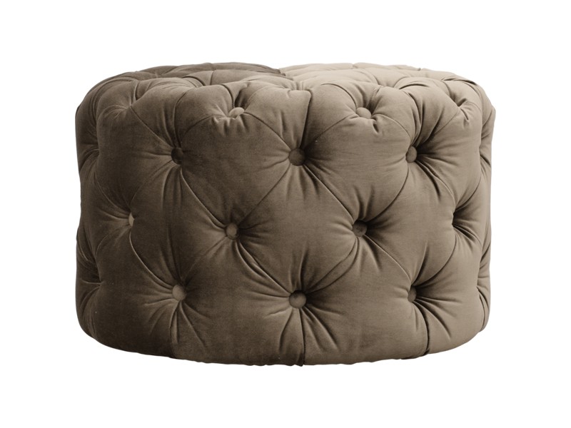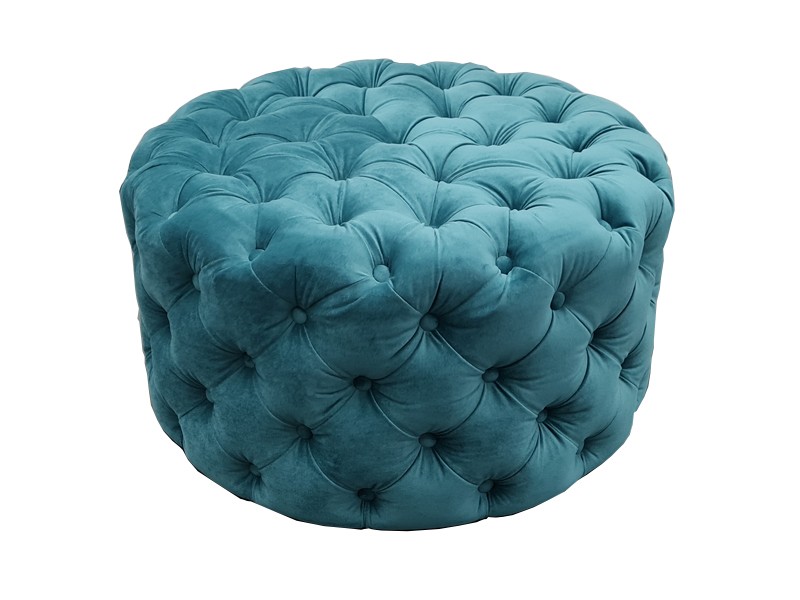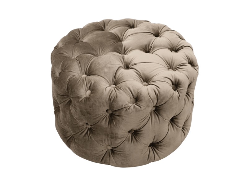 - Upholstered ottoman with capitons and buttons.