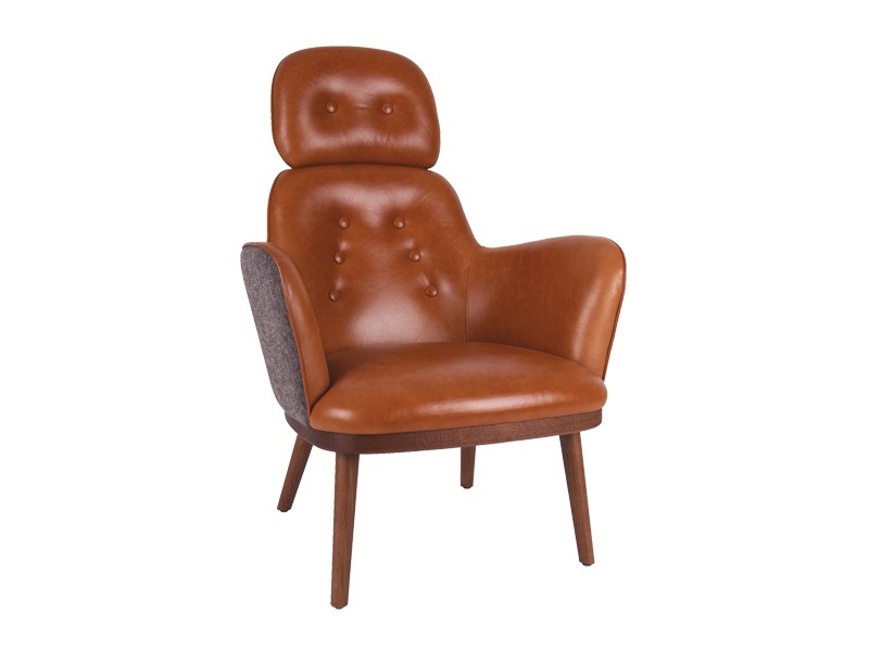- Armchair with ring and wooden structure, available in various wood finishes.
