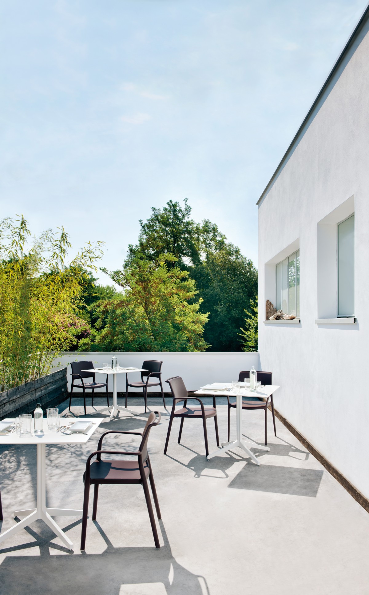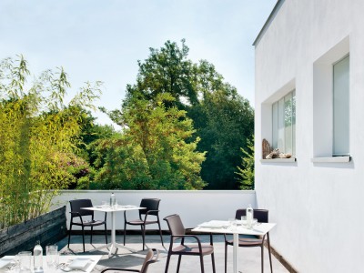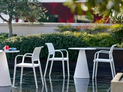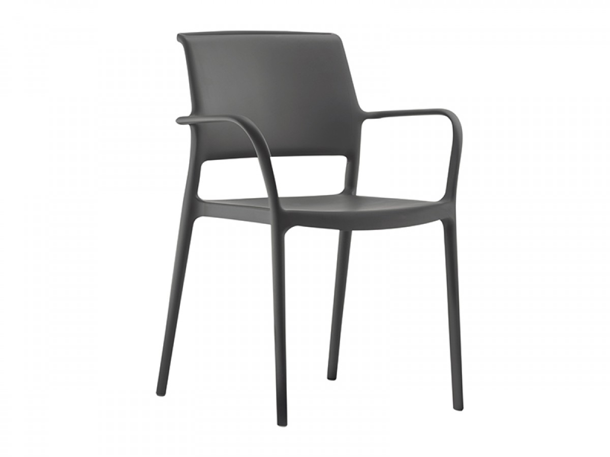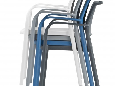 - Polypropylene moulded armchair reinforced with fibreglass, stackable and suitable for both indoors and outdoors.