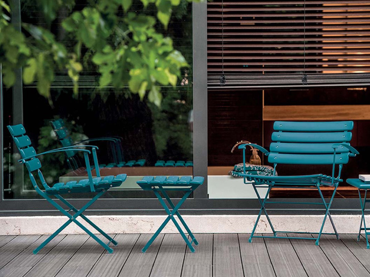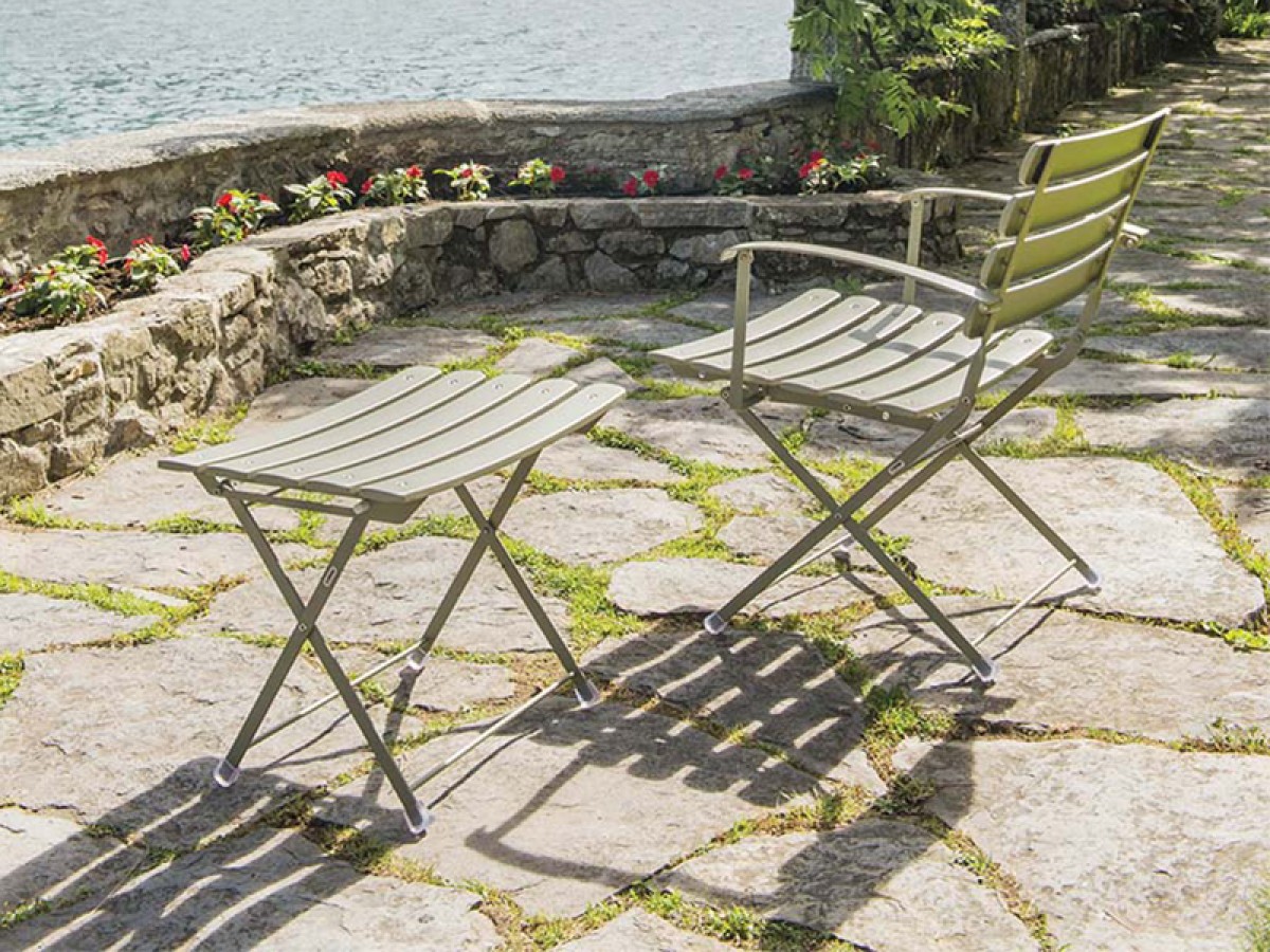 • Different sized tables, chairs with or without armrests and footrests, all of which can be folded making this furniture both informal and dynamic.