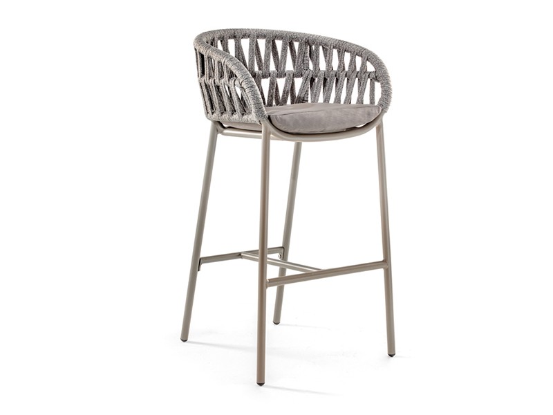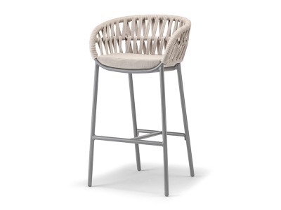 • Discover the epitome of trendiness with our aluminium stackable barstool, elegantly adorned with Polyolefin rope.