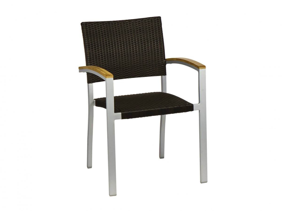- George is a stackable chair, easy to use, resistant and with light grey plastic weaving.