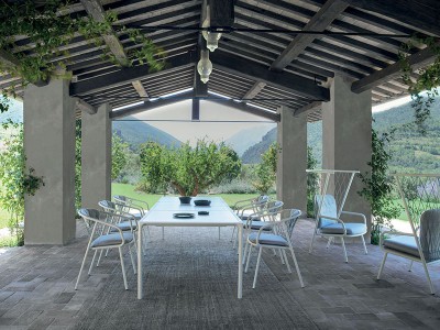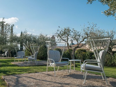 • Nef is an outdoor furniture collection made entirely in aluminium, inspired by the graphic design of hot air balloons.