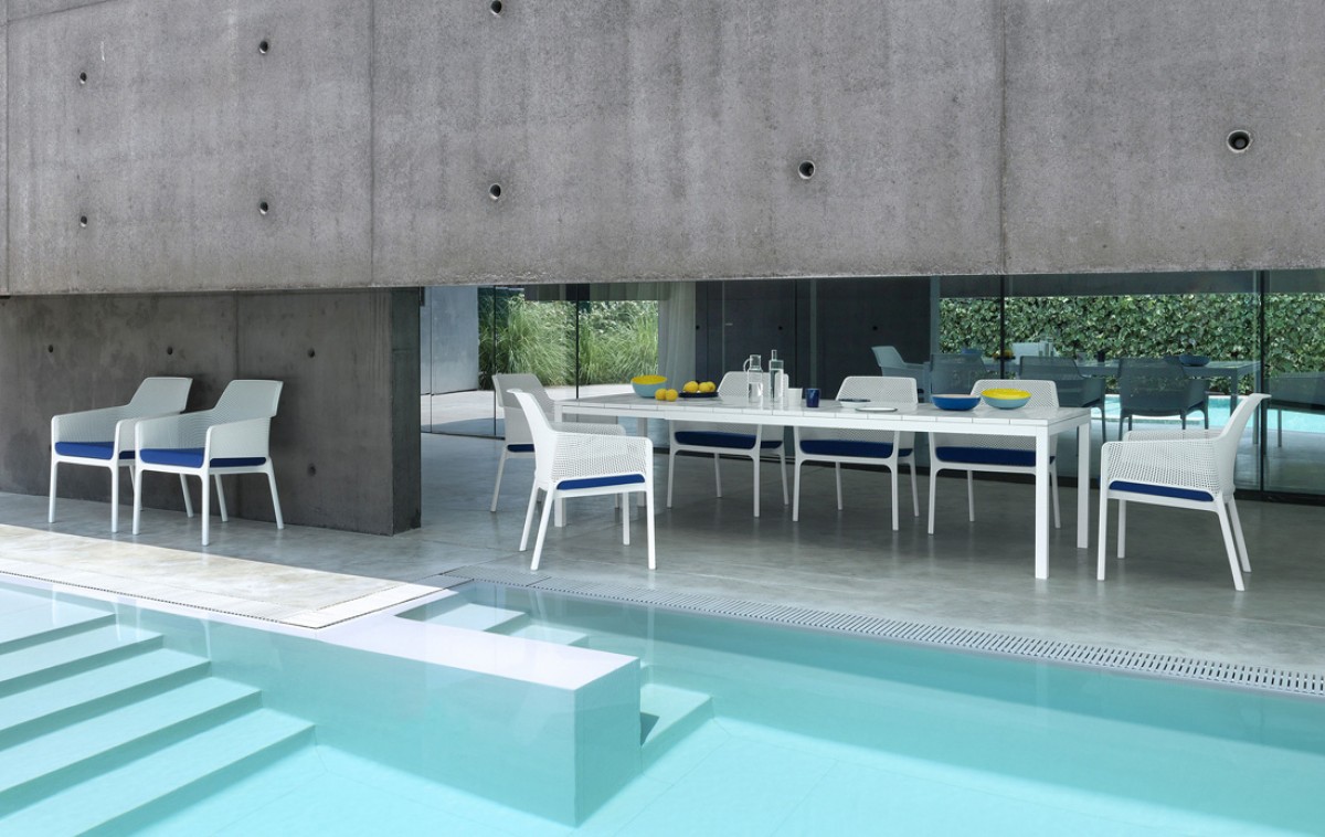 • Stackable armchair made of uniformly colored fiberglass polypropylene resins with uv additives.