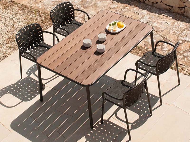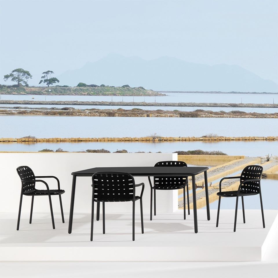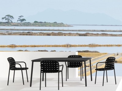• The woven elastic straps, joined in an innovative way to the sophisticated aluminium frame, give life to a collection defined by outstanding, eclectic style and superb comfort, perfectly suitable for outdoor uses.