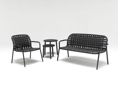 • POP is a complete range of furniture, made up of a chair, armchair, fixed tables, relaxing armchairs, coffee tables of various sizes and a sunbed.