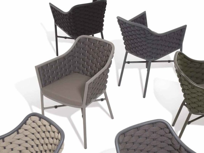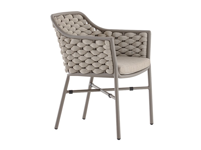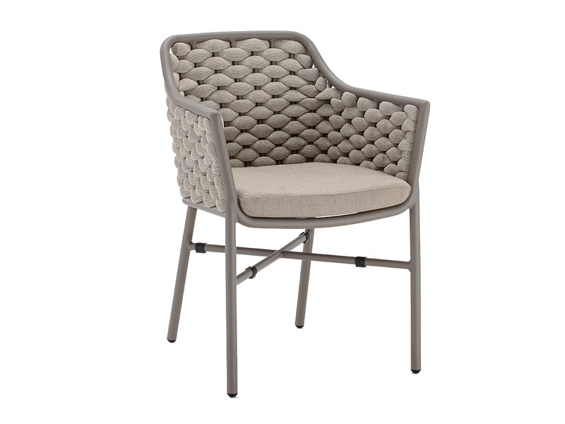 • Aluminium stackable armchair covered with textylene and rubber rope.