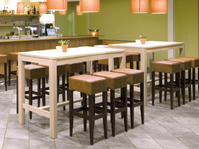 • Solid oak wood bar table with a smooth top finish,7x7cm straight legs.