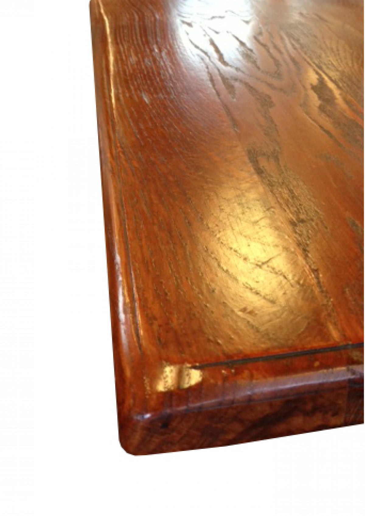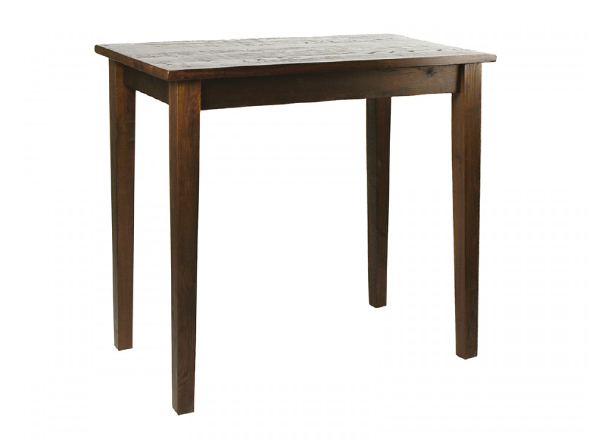 - Oak wood restaurant table with an antique finish top, 7x7cm tapered legs with decorative grooves.