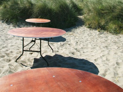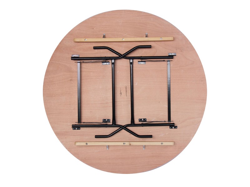 • Ocean Round is a round folding table with plywood table top, finished with PVC edge and epoxy black steel frame.