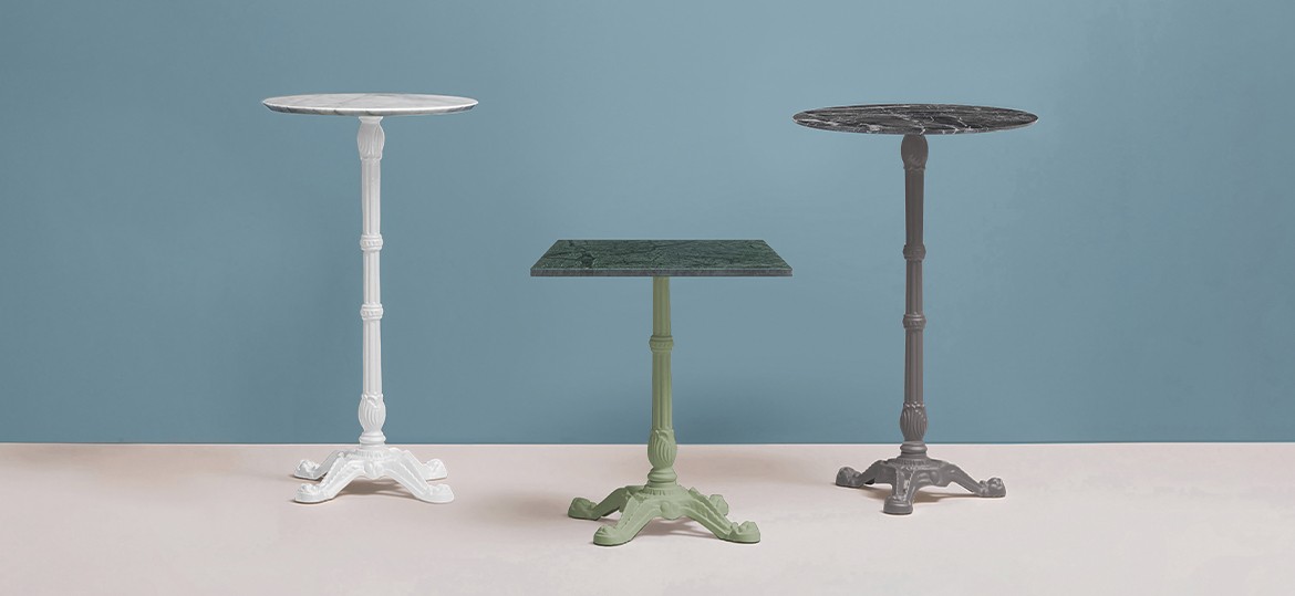 - The expressive and structural strength of the cast iron gives life to the Bistrot table collection, solid and timeless.