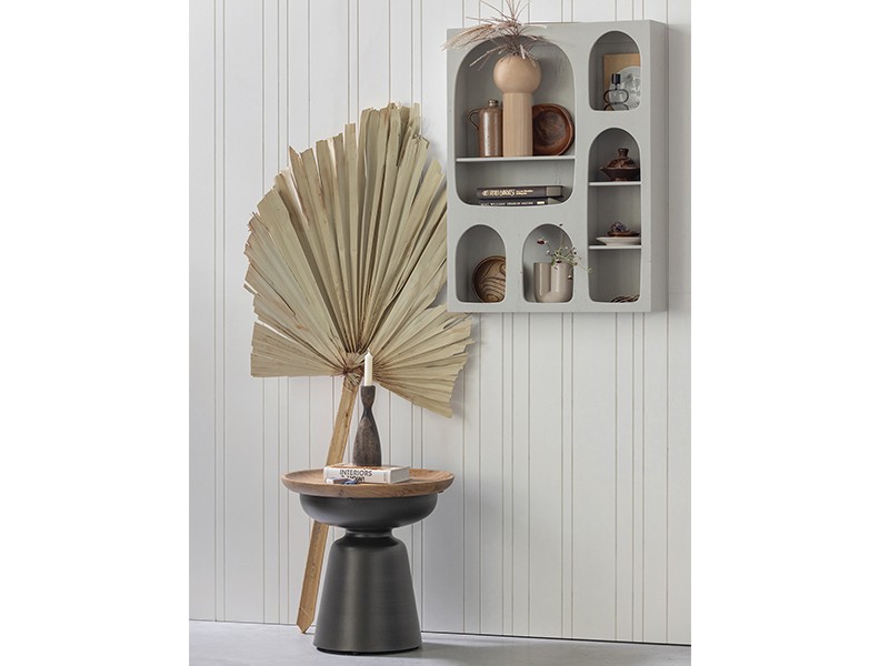 • The round table top is crafted from mango wood and features a raised edge that is elegantly rounded, adding both functionality and style.