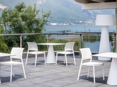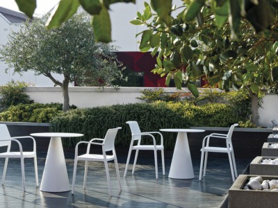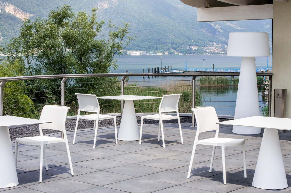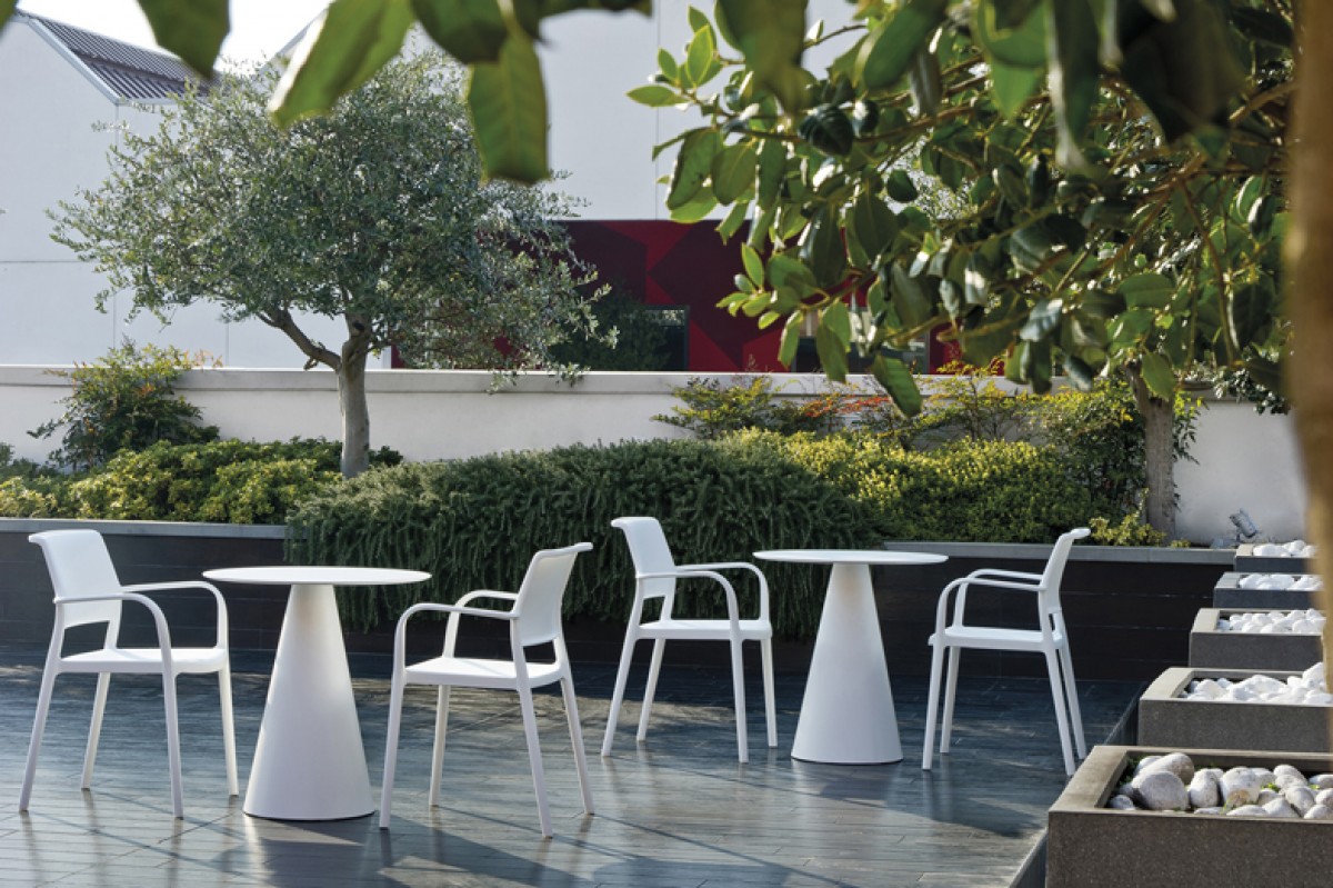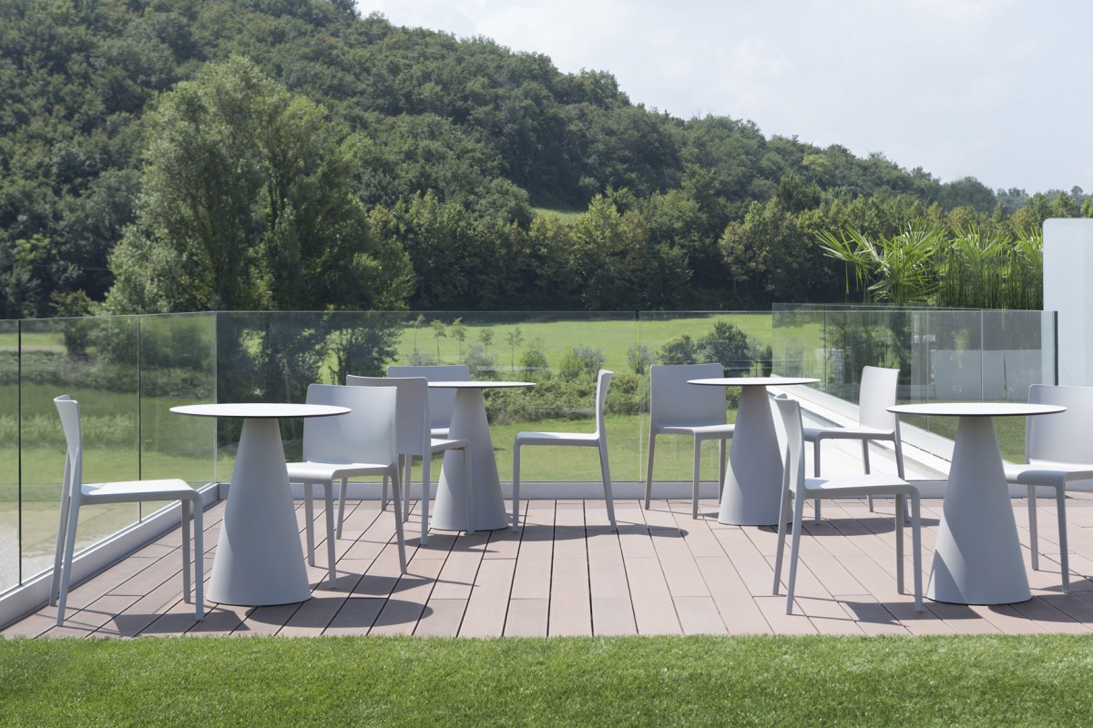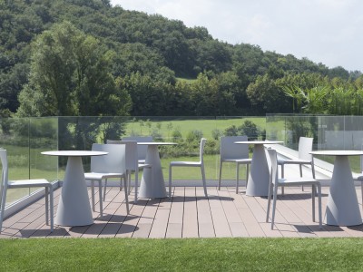 • Injected polypropylene table base which can be combined with  solid laminate, glass or powder coated steel tops.