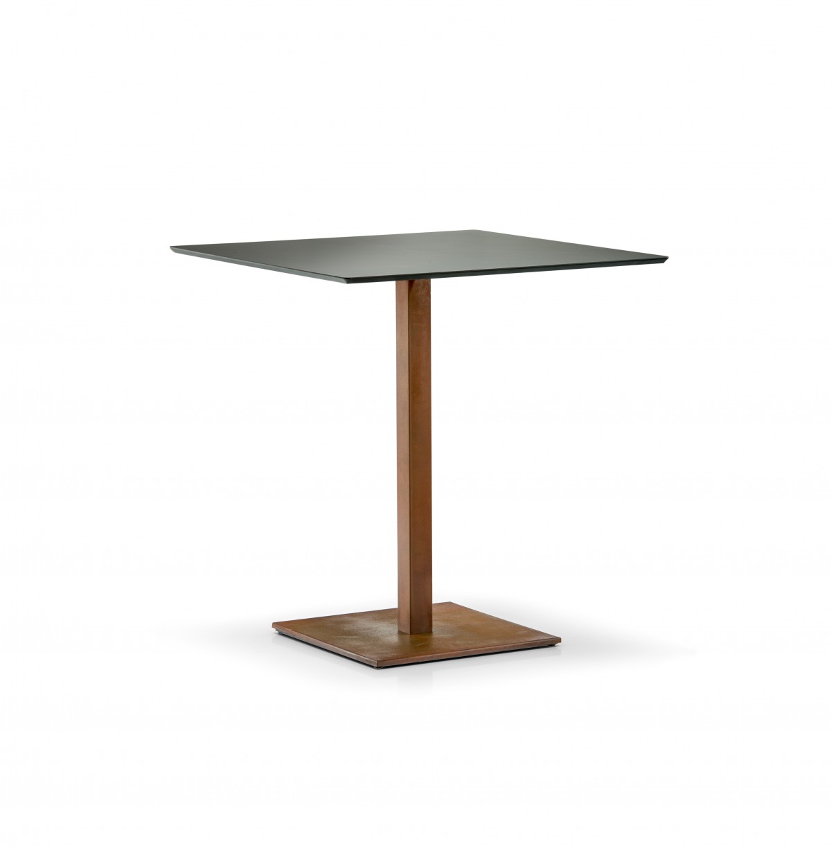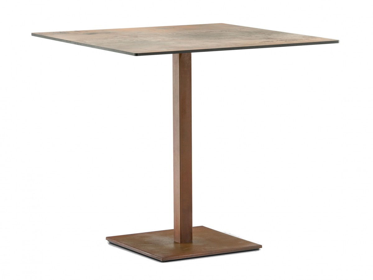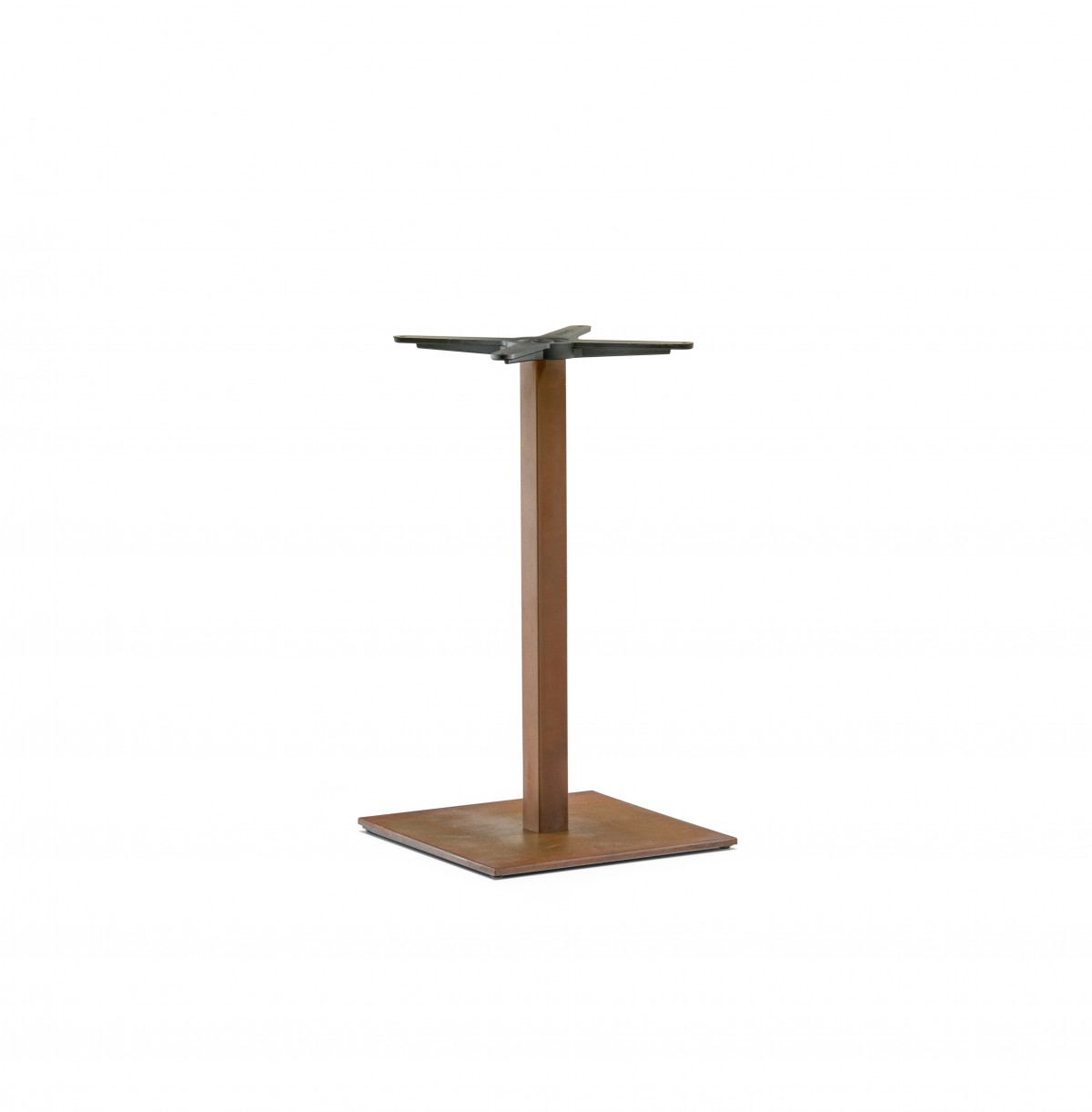 - Inox table base, brushed stainless steel base 400x400 mm with column 50x50 mm with a vintage rusty look.