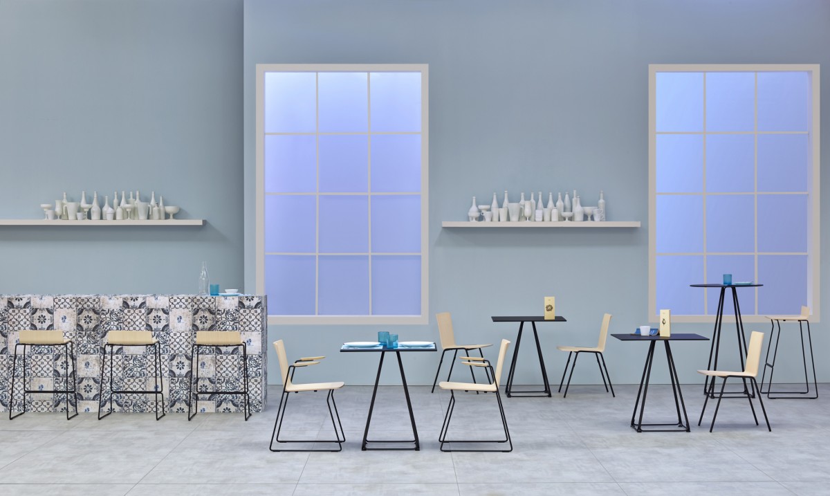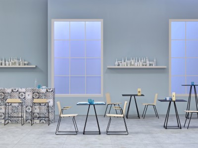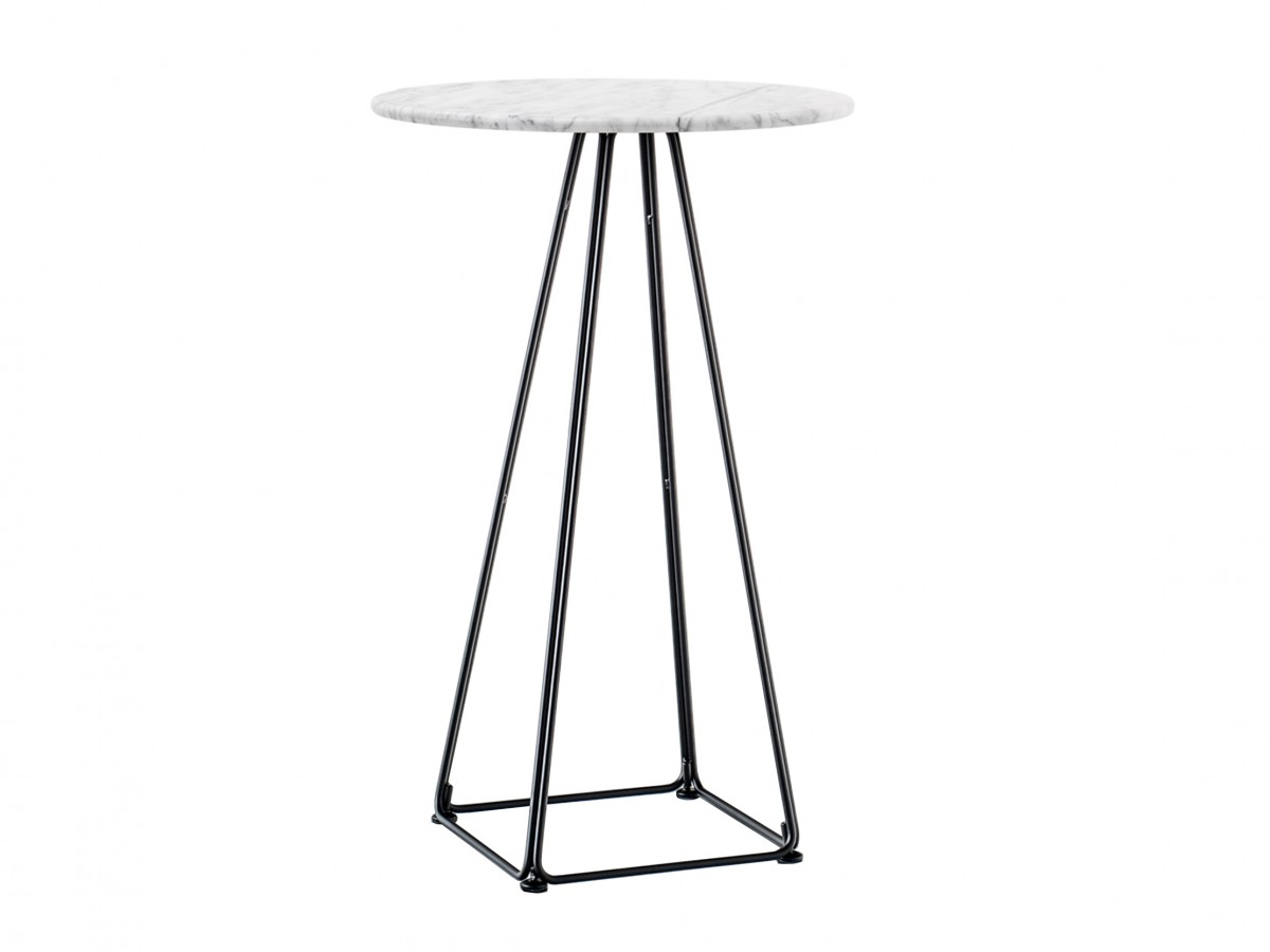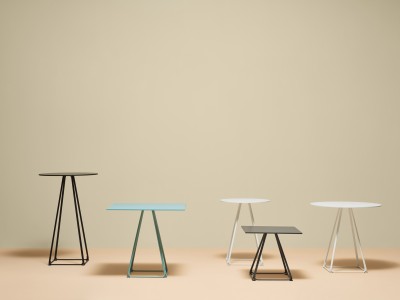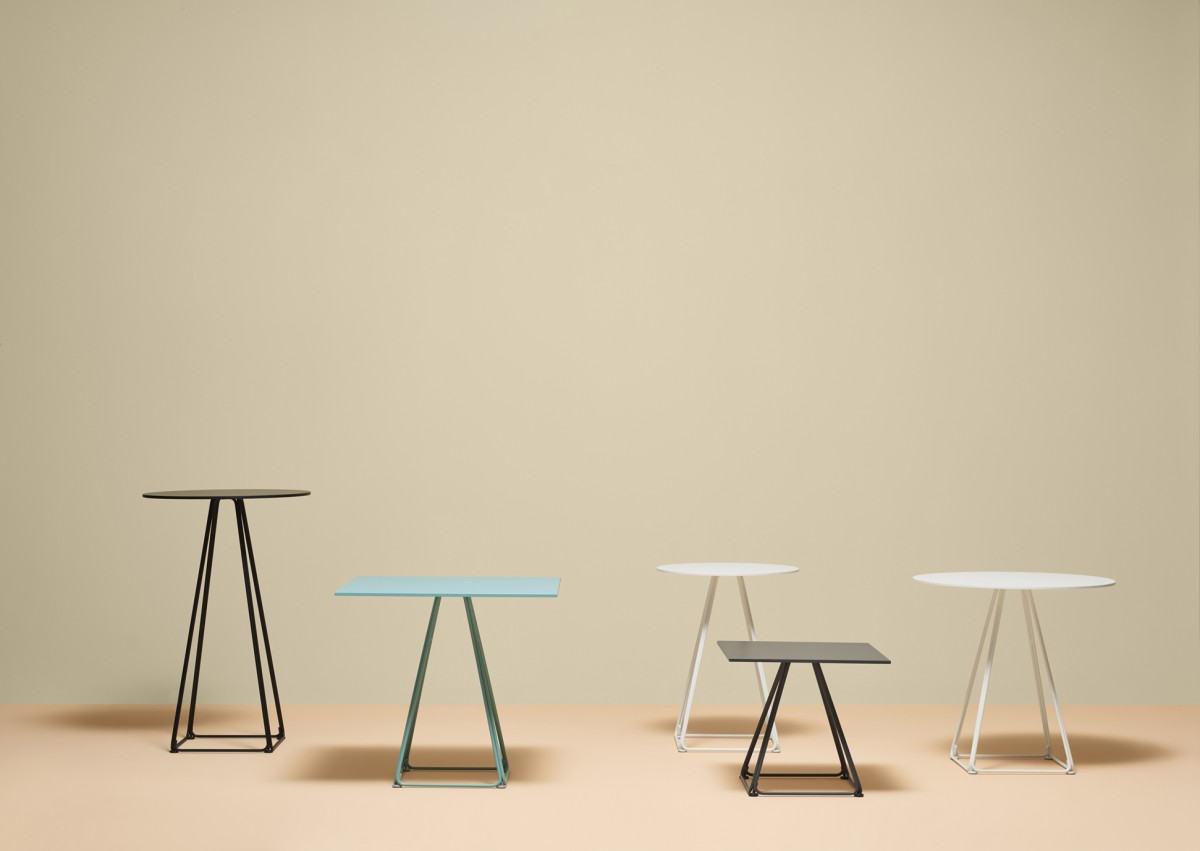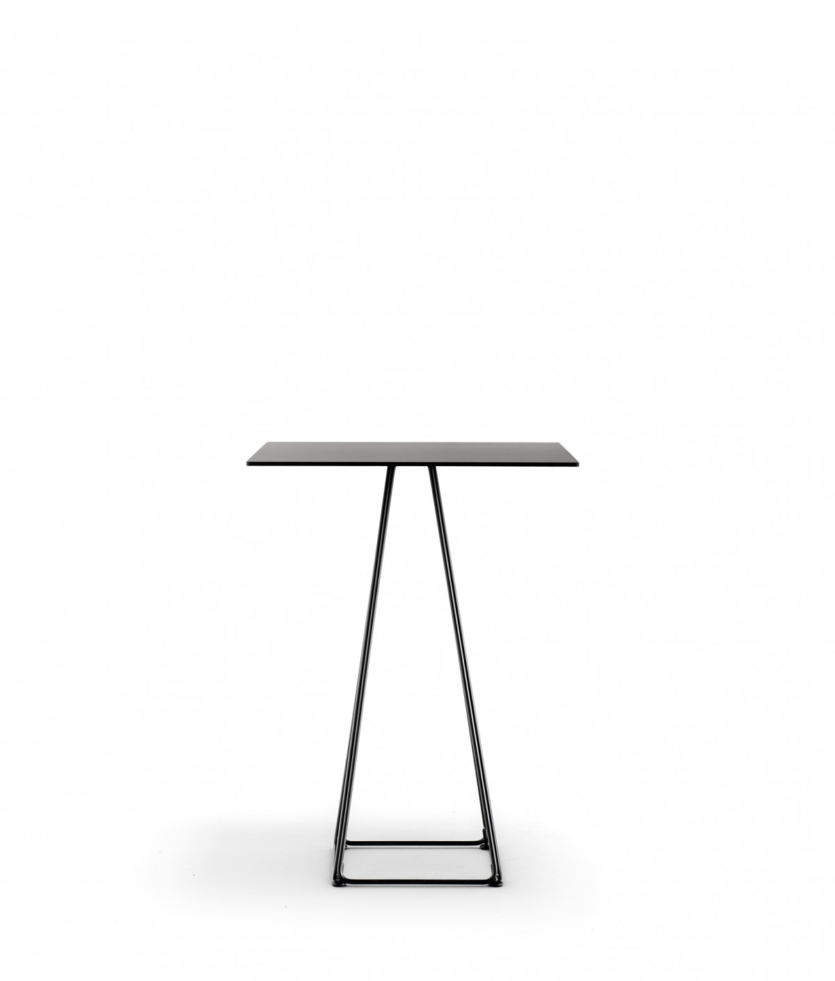 • The base consists of four trapezoidal steel rods and can be combined with tops of different sizes and finishes.