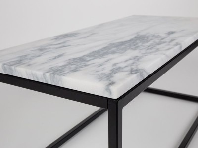 • On top, an exquisite thick polished 19 mm white marble slab completes the look
