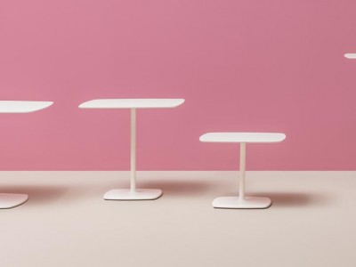 - Stylus table base stands out for its minimalistic look and organic outline, thanks to the slim central column and to the rounded corners of its flat square base.