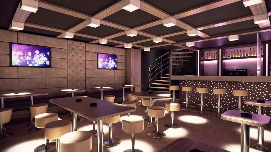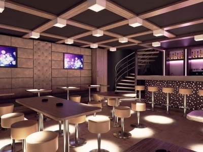 Custom made counter bar with led lights and CNC cutout front panel. Available also with client's logo.
