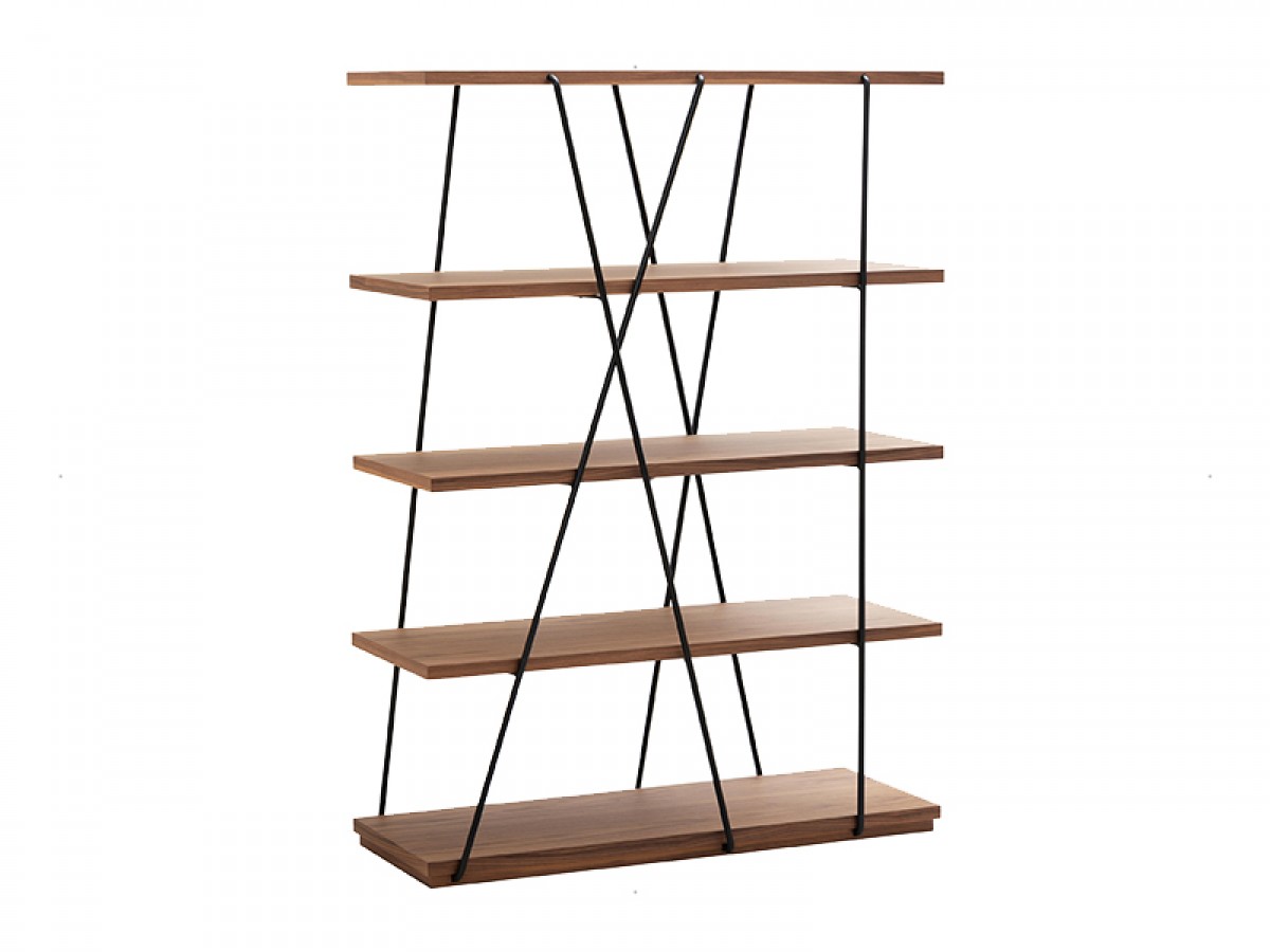 - Bookshelf with structure in iron rebar varnished white or black,with shelves in flamed oak, canaletto walnut or lacquered in black or white.
